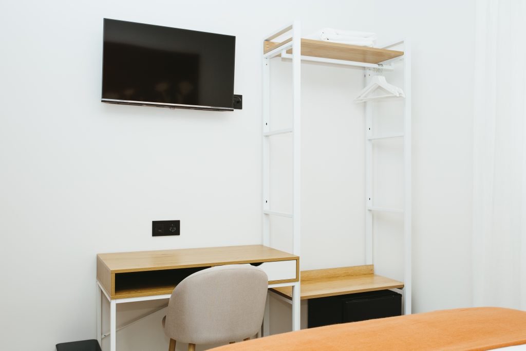 En Hostal Ainhoa contamos con 10 habitaciones modernas, luminosas y totalmente equipadas, pensadas para adaptarse a todo tipo de viajeros: individuales, parejas, familias o trabajadores. Todas disponen de baño privado, climatización, Wi-Fi gratuito, Smart TV, escritorio, minibar y un ambiente tranquilo que invita al descanso. La limpieza, el confort y los pequeños detalles forman parte de nuestro compromiso con una estancia agradable.